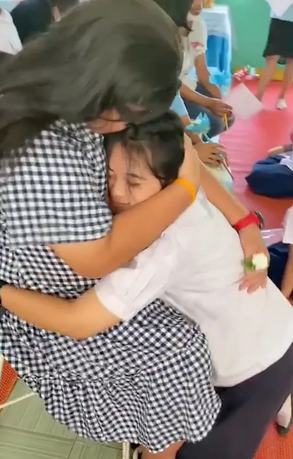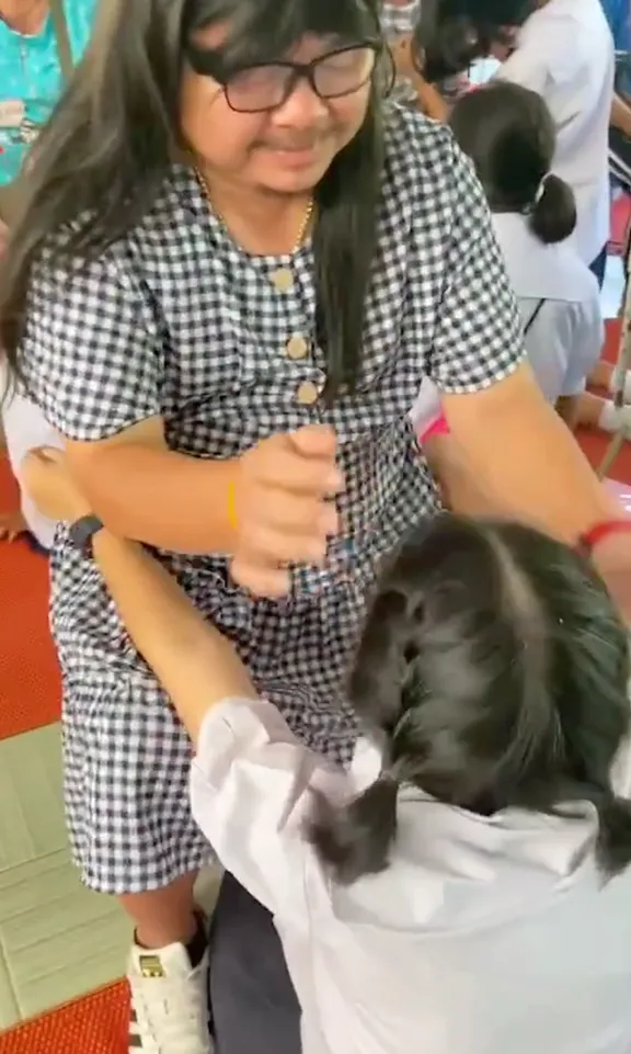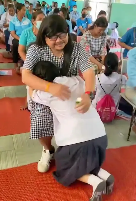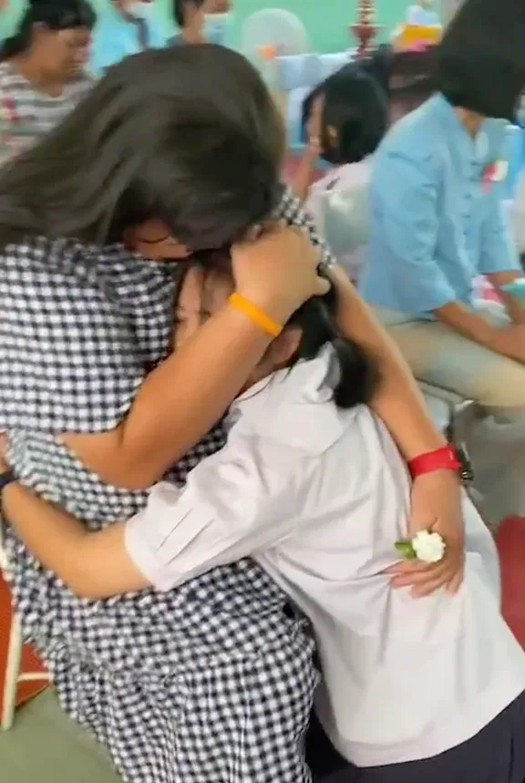 Édes ölelésük után a lány letérdelt, miközben az apja megigazította a haját. A megható felvételek vírusként terjedtek el az interneten, megmutatva az apa és lánya közötti őszinte szeretetet.