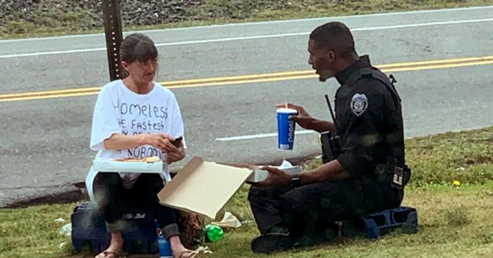 Egy rendőr a földön ebédelt egy hajléktalannal, de a képük egy óriási vitát indított el az interneten