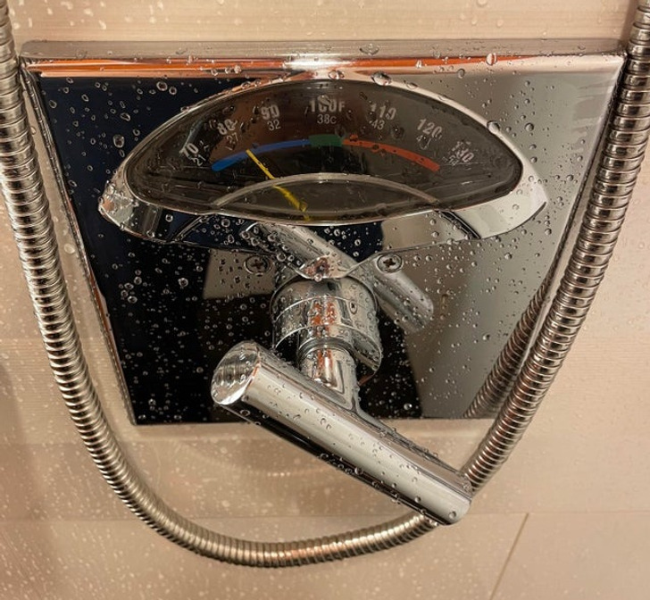 Zuhanyzó, ami pontosan mutatja a víz hőmérsékletét.