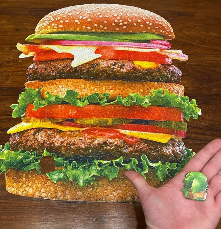 Burger-puzzle, aminek a darabjai is burger alakúak.