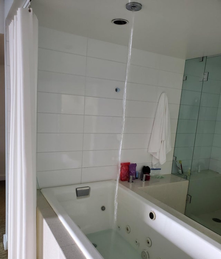 Ebbe a jacuzziba a mennyezetről folyik a víz.