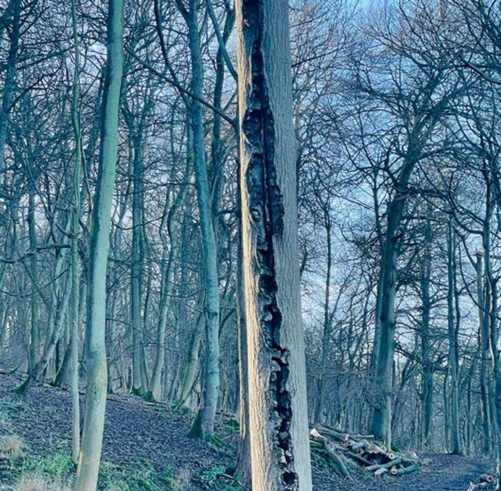 Villámcsapás nyoma egy fán.
