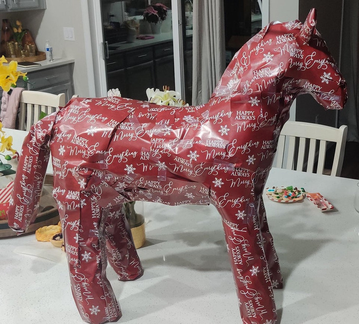 „A lányunk a lovak megszállottja. Vettünk neki egy ajándékkártyát lovaglási órákra, és így csomagoltam be.”