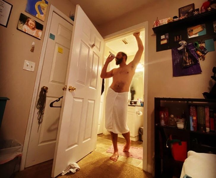 A párom reggeli készülődés közben..