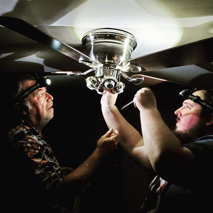 Apa & fia ventilátort szerel.