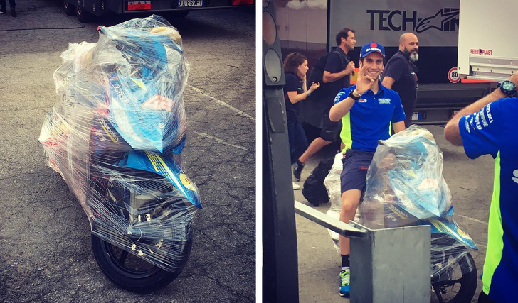 Még egy híres motorversenyző – például Álex Rins – sincs védve a kollégák szívatásától