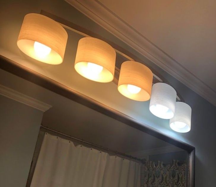 A férjem kicseréltea kiégett fürdőszobai izzókat.