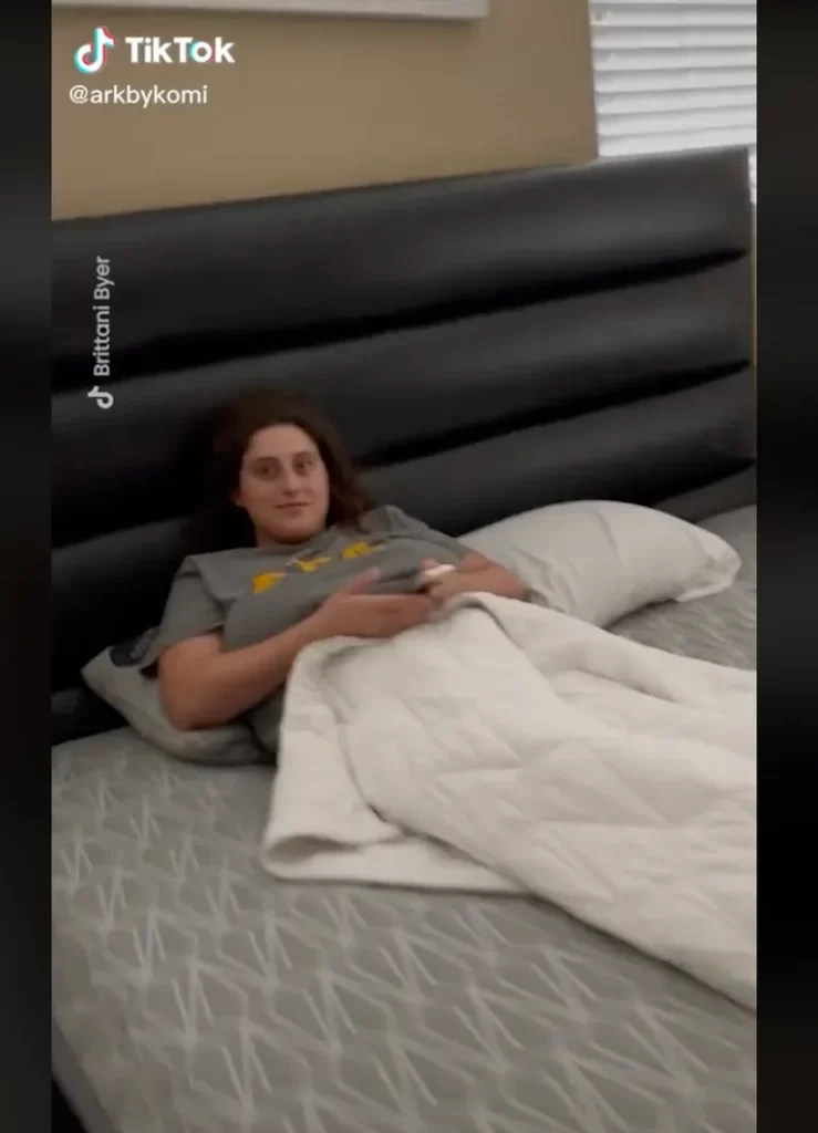 De ez még nem minden. A hölgy lazán feküdt Brittani ágyában, és még integetett is neki. Brittani megdöbbenve és feldühödve azonnal reagált: