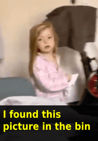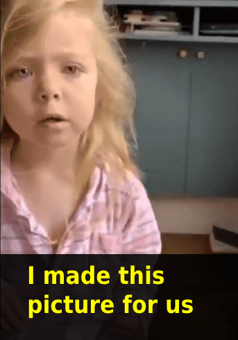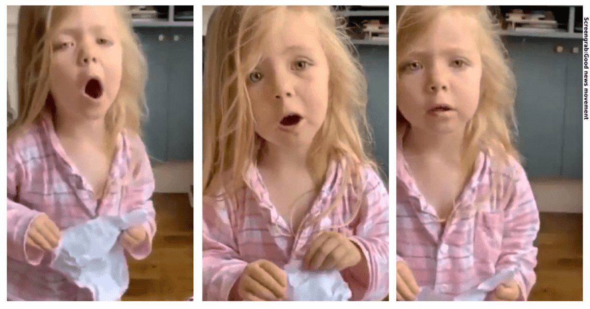 A Good News Movement által feltöltött aranyos videón egy kislány látható, amint egy papírdarabbal a kezében berohan a szobába. „A képet a kukában találtam” – mondja az édesanyjának, majd felháborodottan közli: „Én csináltam a képet nekünk”.