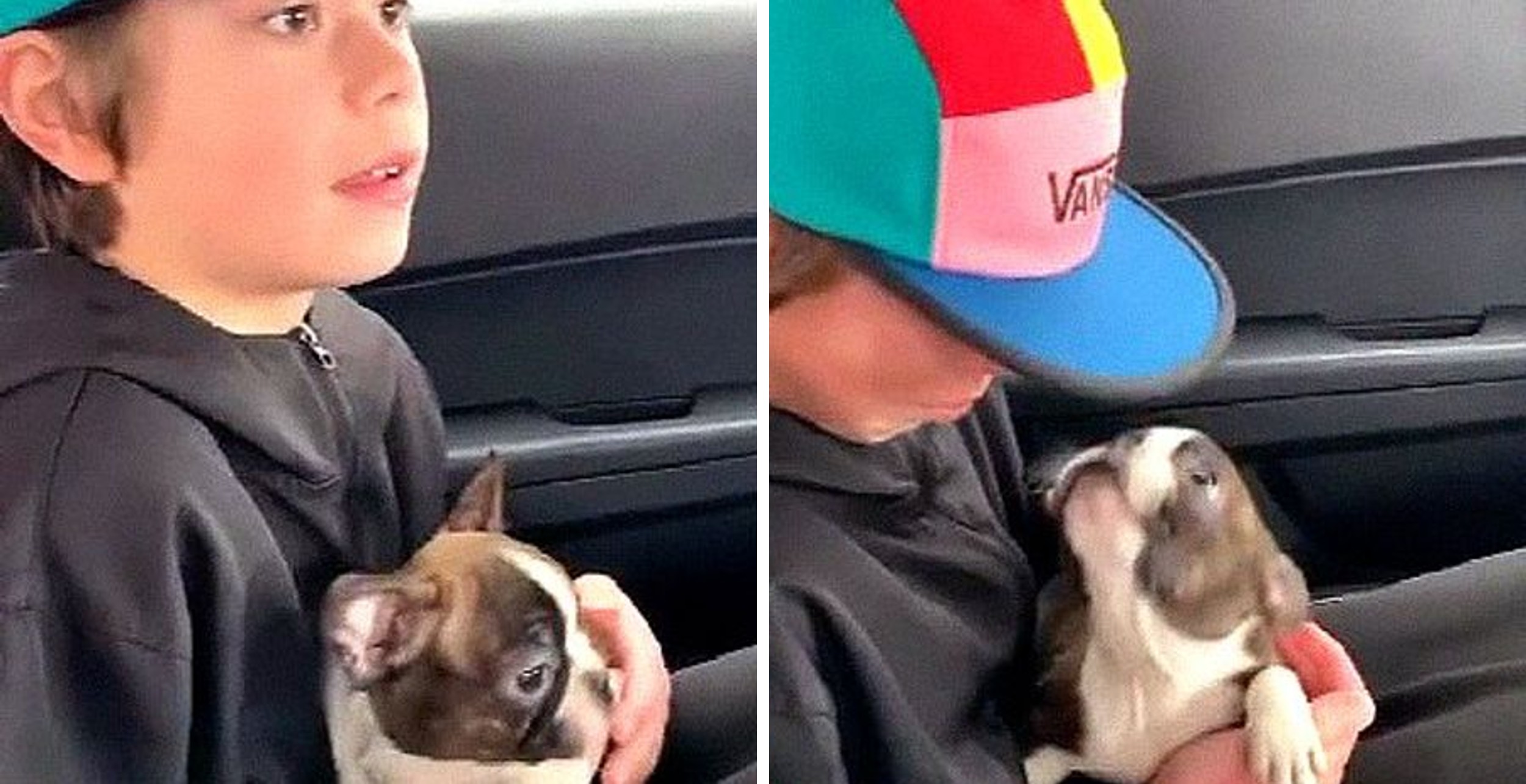 A kutya egy kölyök boston terrier. Ez arra a Boston Terrier játékra emlékeztetett, amelyet kisgyermekként mindenhová magával vitt, hogy megmutassa mindenkinek, mennyire szeretne egy kutyát.