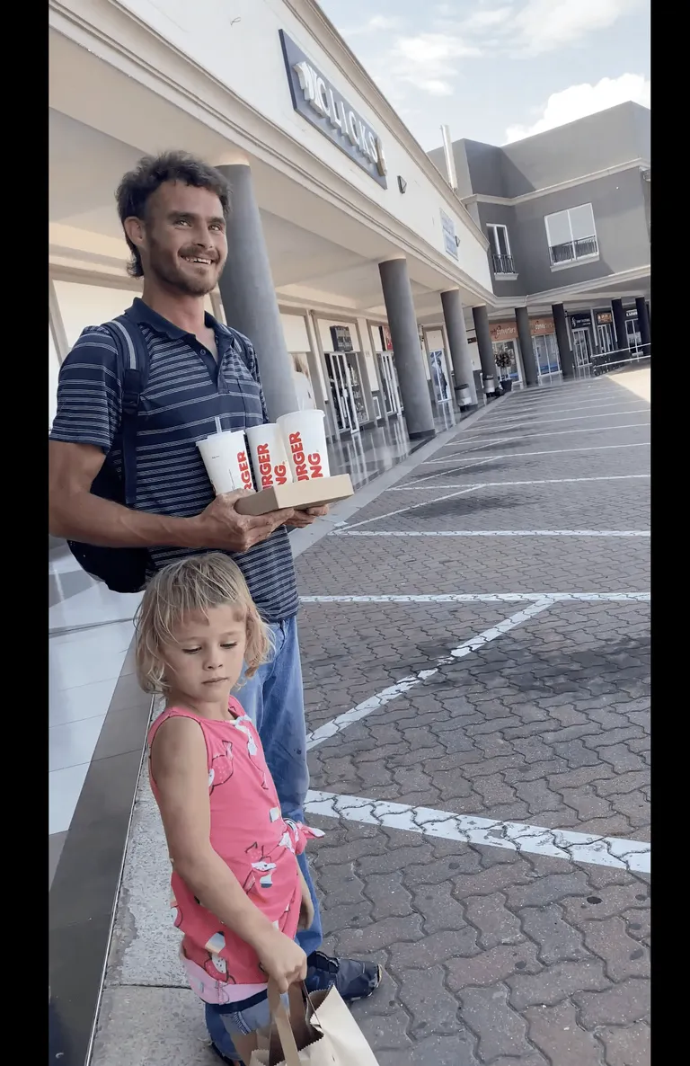 Látva, hogy a zaklatott apára ráférne egy kis öröm, Phakathi elment a közeli Burger Kingbe, és ételt vett az apuka-lánya párosnak. Miután átadta nekik, a vlogger emlékeztette őket, hogy karácsony van, és megérdemlik, hogy boldogok legyenek.