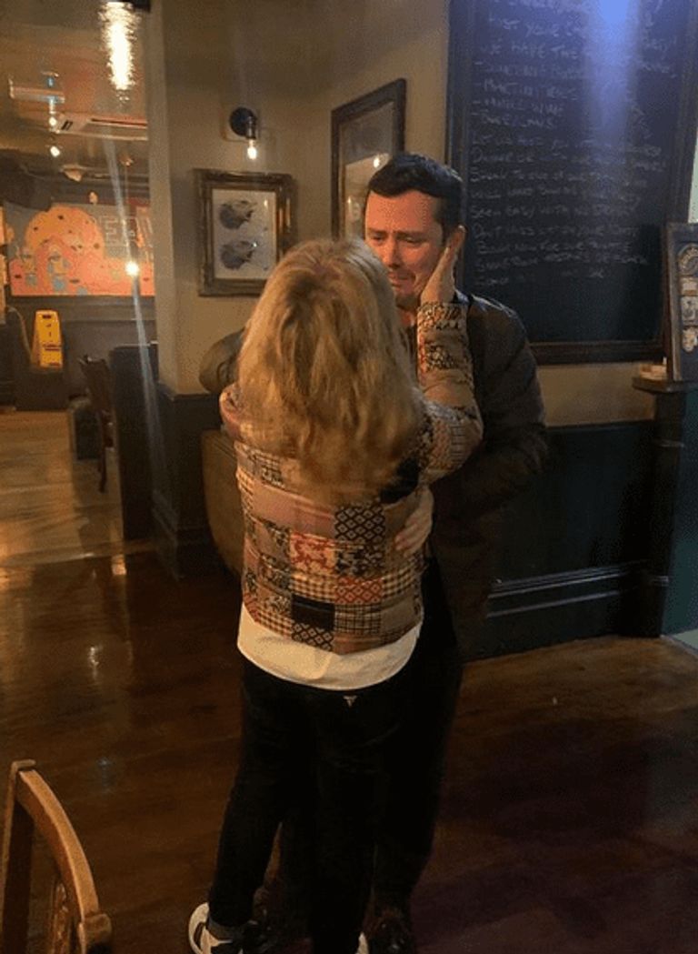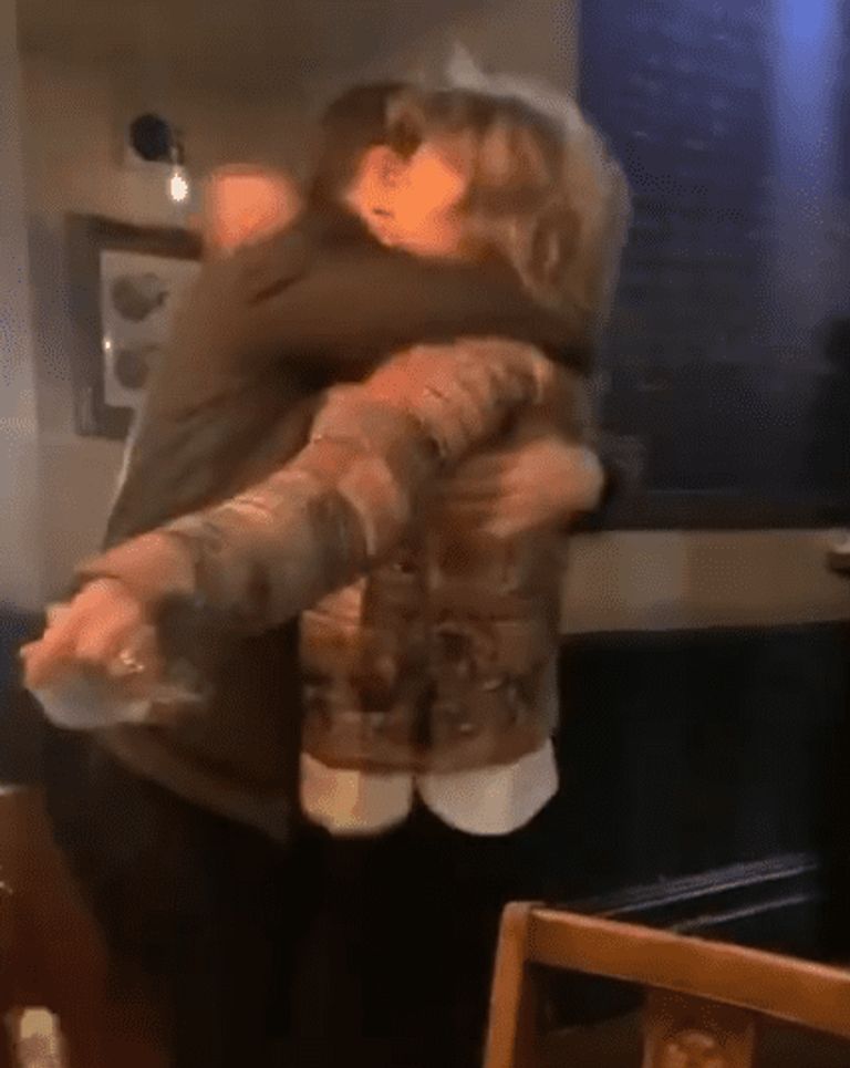 A tekintete azonban hirtelen az anyjára esett, aki belépett az étterembe, és elindult felé. A meglepett férfi felpattant a helyéről, és néhány lépés alatt megtette a távolságot az anyjáig, majd a várakozó karjaiba vetette magát.